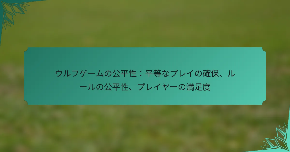 ウルフゲームにおけるルールの公平性は、すべてのプレイヤーがゲームプレイ中に平等な機会と公平な条件を持つことを保証します。この概念は、プレイヤーの信頼と満足度を維持するために重要であり、ゲームの全体的な体験と競争力に直接影響を与えます。
