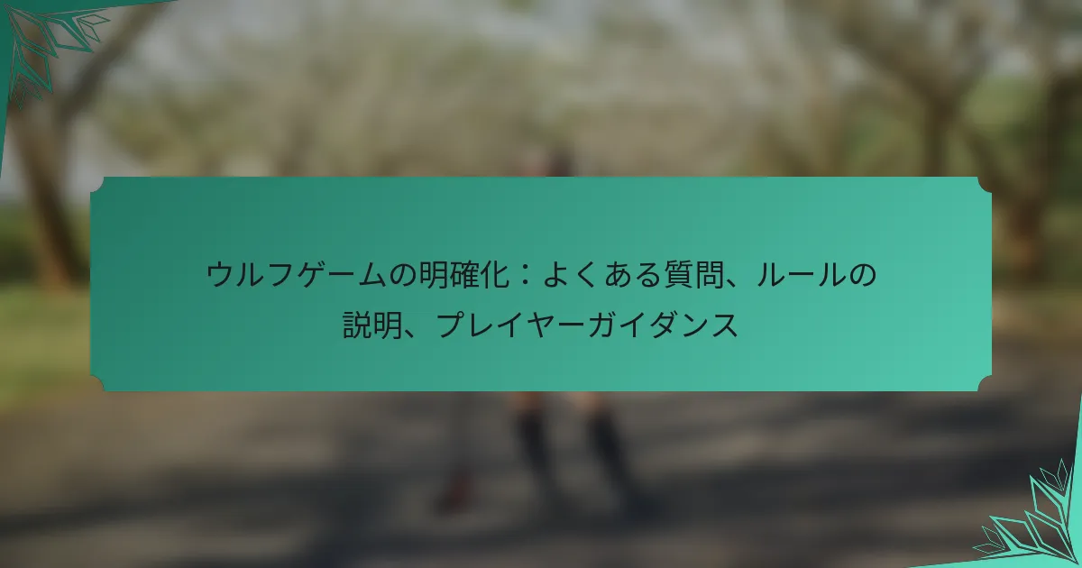 ウルフゲームのゲームルールは、すべての参加者に対して公平な競技の場を作るように設計されています。これには、すべてのプレイヤーに平等に適用される明確な目標と制限を定義することが含まれ、誰も不公平なアドバンテージを持たないようにしています。