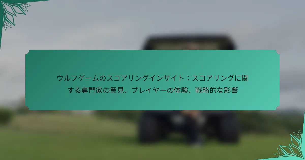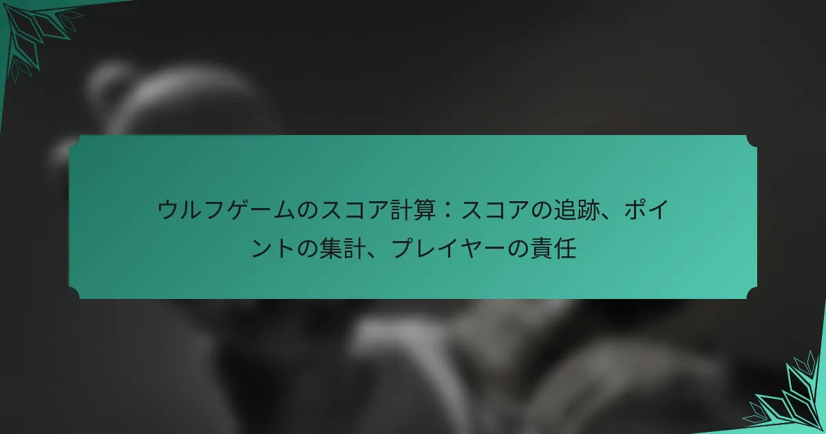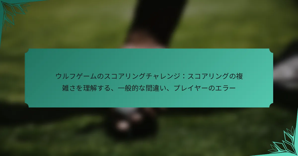ウルフゲームのスコアリングには、プレイヤーの結果に大きく影響を与えるさまざまな複雑さがあります。これらの複雑さを理解し、一般的なミスを認識することで、プレイヤーはゲームプレイを向上させ、全体的なパフォーマンスを改善することができます。スコアリングシステムを理解し、効果的なトラッキング方法を実施することは、エラーを回避し、成功を最大化するために不可欠です。