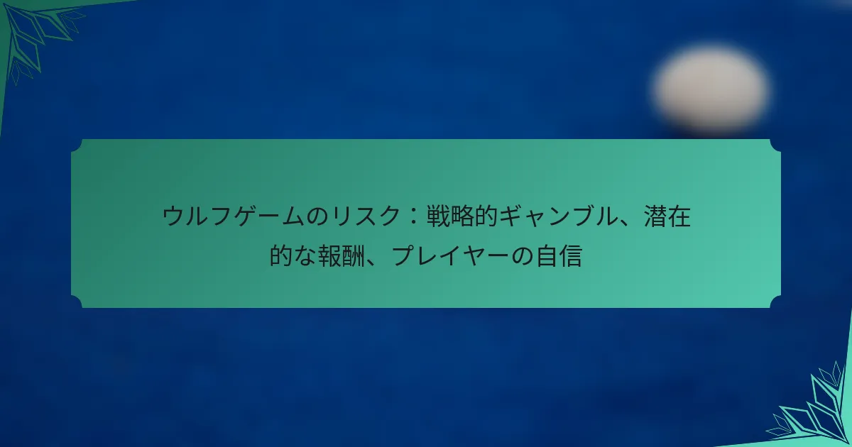 ゲームメカニクスを効果的に活用することで、プレイヤーは戦略を向上させ、ウルフゲームでの全体的なパフォーマンスを改善することができます。