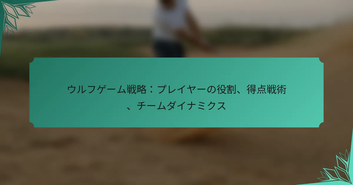 ウルフゲームにおける効果的な戦略は、プレイヤーの役割を理解し、ゲームメカニクスを活用し、チームダイナミクスを育むことに基づいています。これらの要素をマスターすることで、プレイヤーはパフォーマンスとスコアリングの可能性を大幅に向上させることができます。